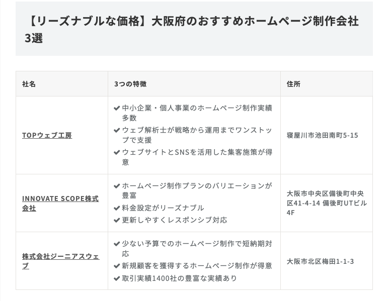 同記事の中で、TOPウェブ工房 【株式会社dob】 は【リーズナブルな価格】大阪府のおすすめホームページ制作会社3選として掲載されております。
