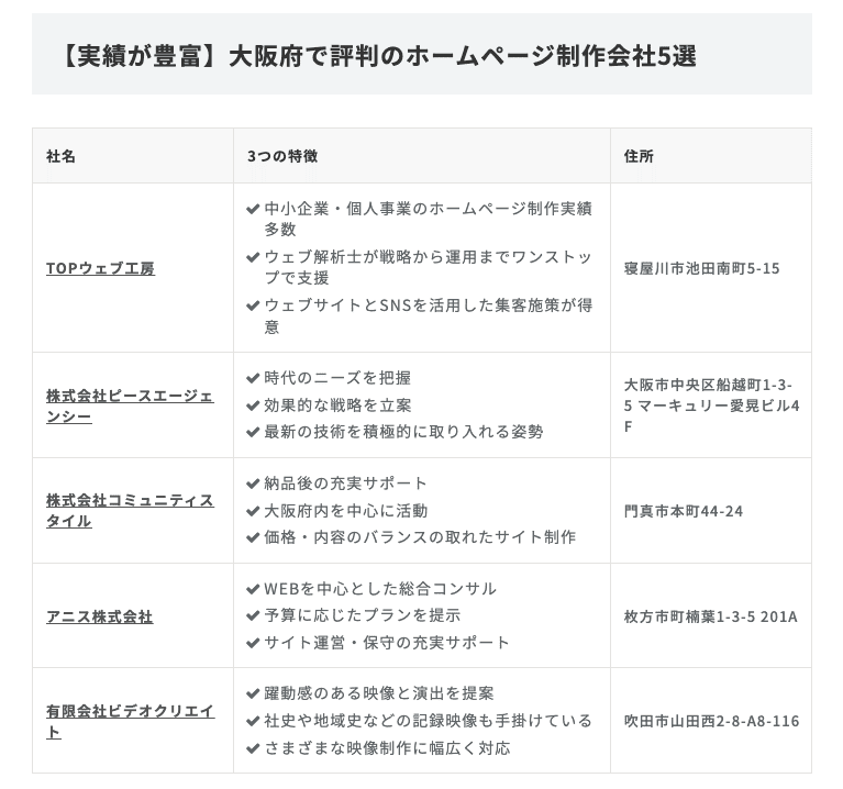 同記事の中で、TOPウェブ工房 【株式会社dob】 は「【実績が豊富】大阪府で評判のホームページ制作会社5選」として掲載されております。