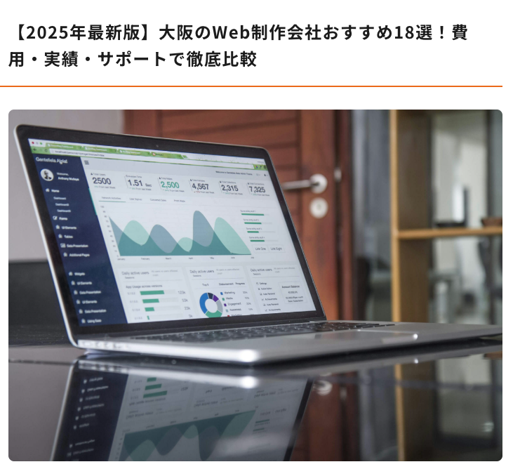 【メディア掲載】大阪のWeb制作会社おすすめ18選!に掲載されました! 投稿日 2025-11-27 著者 kitagawa カテゴリー ニュース 株式会社デジタルトレンズ様が運営するメディア「大阪オンライン」にて、 「【2025年最新版】大阪のWeb制作会社おすすめ18選!費用・実績・サポートで徹底比較」という記事で 株式会社dobをご紹介いただきました。 ご紹介ページ 【2025年最新版】大阪のWeb制作会社おすすめ18選!費用・実績・サポートで徹底比較 【2025年最新版】大阪のWeb制作会社おすすめ18選!費用・実績・サポートで徹底比較 | Osaka Online(大阪オンライン)目次1 はじめに2 大阪のWeb制作会社おすすめ18選!費用・実績・サポートで徹底比較2.1 ナカムライクウェブ2.2 株式会社シイテ2.3 ディー.アスピレーション株式会社2.4 株…osaka-online.jp