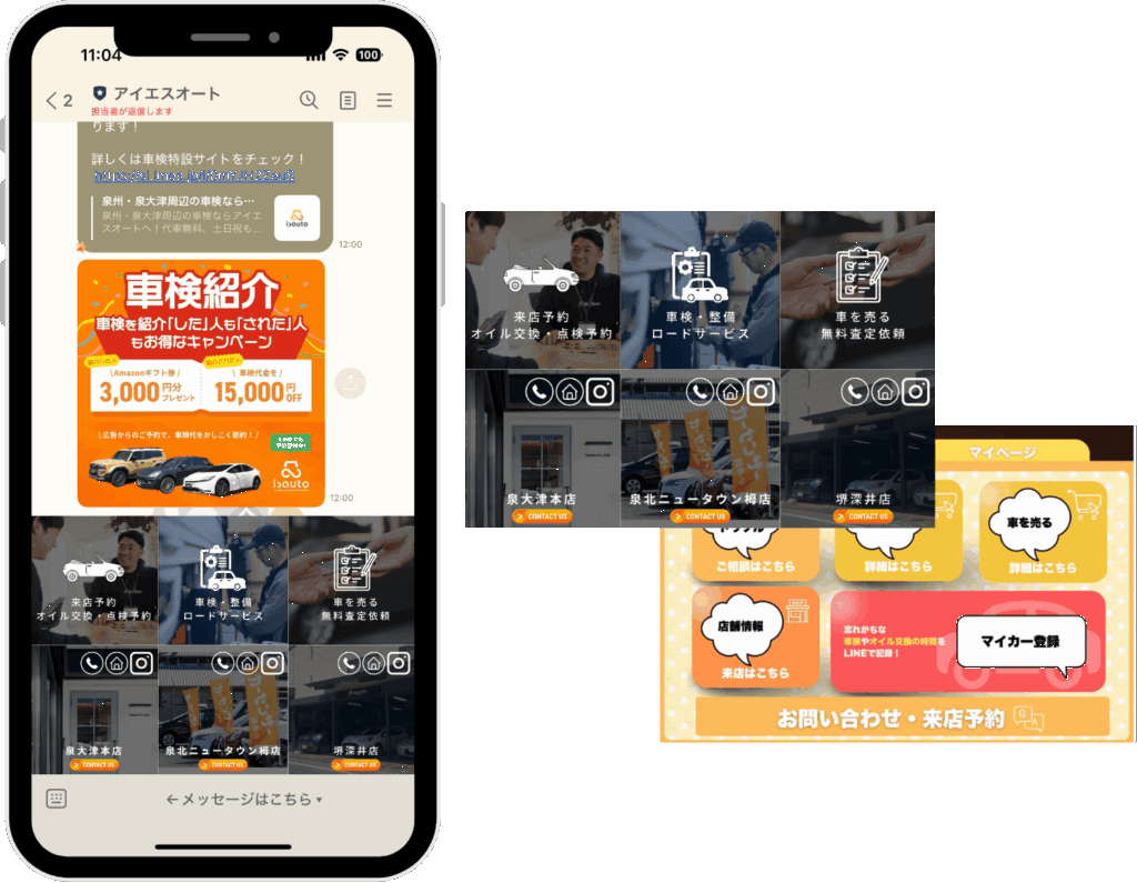 個別チャットによる対応で管理が煩雑化していたほか、車検案内などを手書きハガキ(手動)で行っており、アナログ作業による業務負荷が課題となっていた。(友だち数:1,000人)